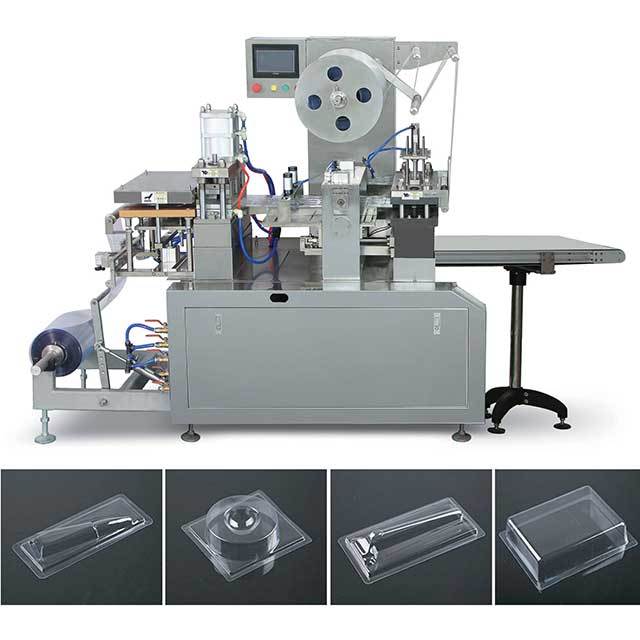 The equipment is suitable for forming plastic trays, for purposes of blister packaging of many industrials, like stationery, small hardware, medical equipment,toys, battery, electronic products, automobile and motorcycle fittings, commodity, cosmetic, rubber products, dinnerware, kitchenware, and so on. For example, the medicine injection, syringe, toy car, flashlight, spark plugs, toothbrush, lipstick, facial mask, chopstick, shaver, scissors, hooks, cleaning balls,bottle openers, correction fluid, ball pen/pencil, sharpener, etc.